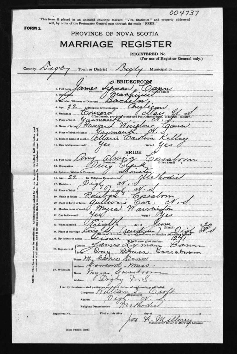 Registration: Year: 1920 number: 4737