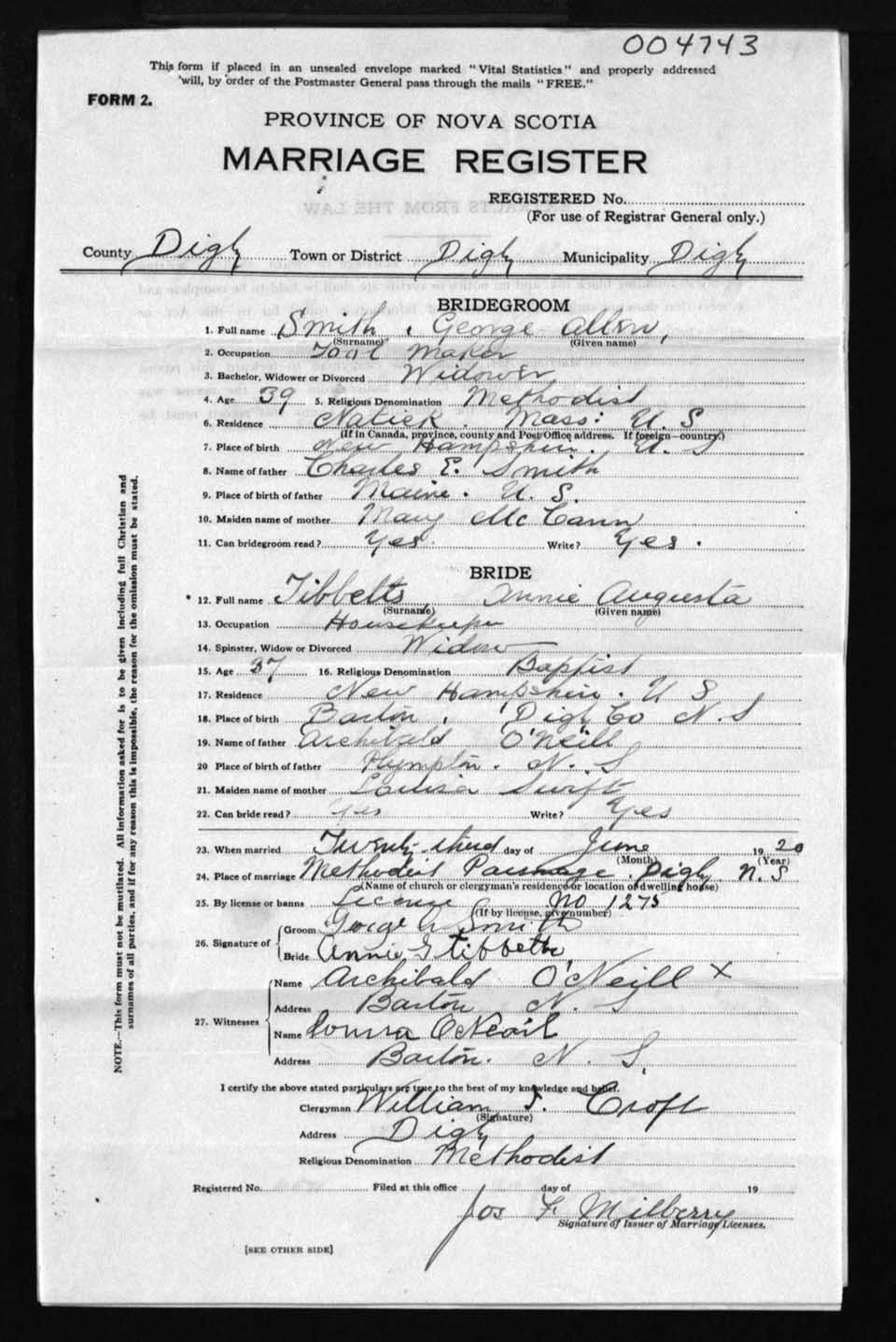 Registration: Year: 1920 number: 4743