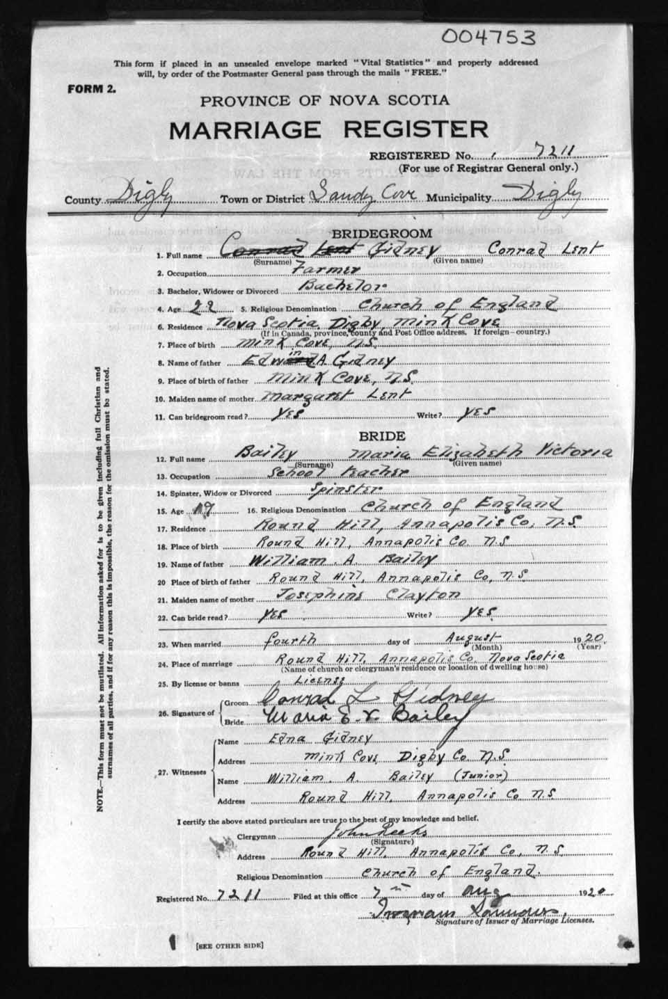 Registration: Year: 1920 number: 4753