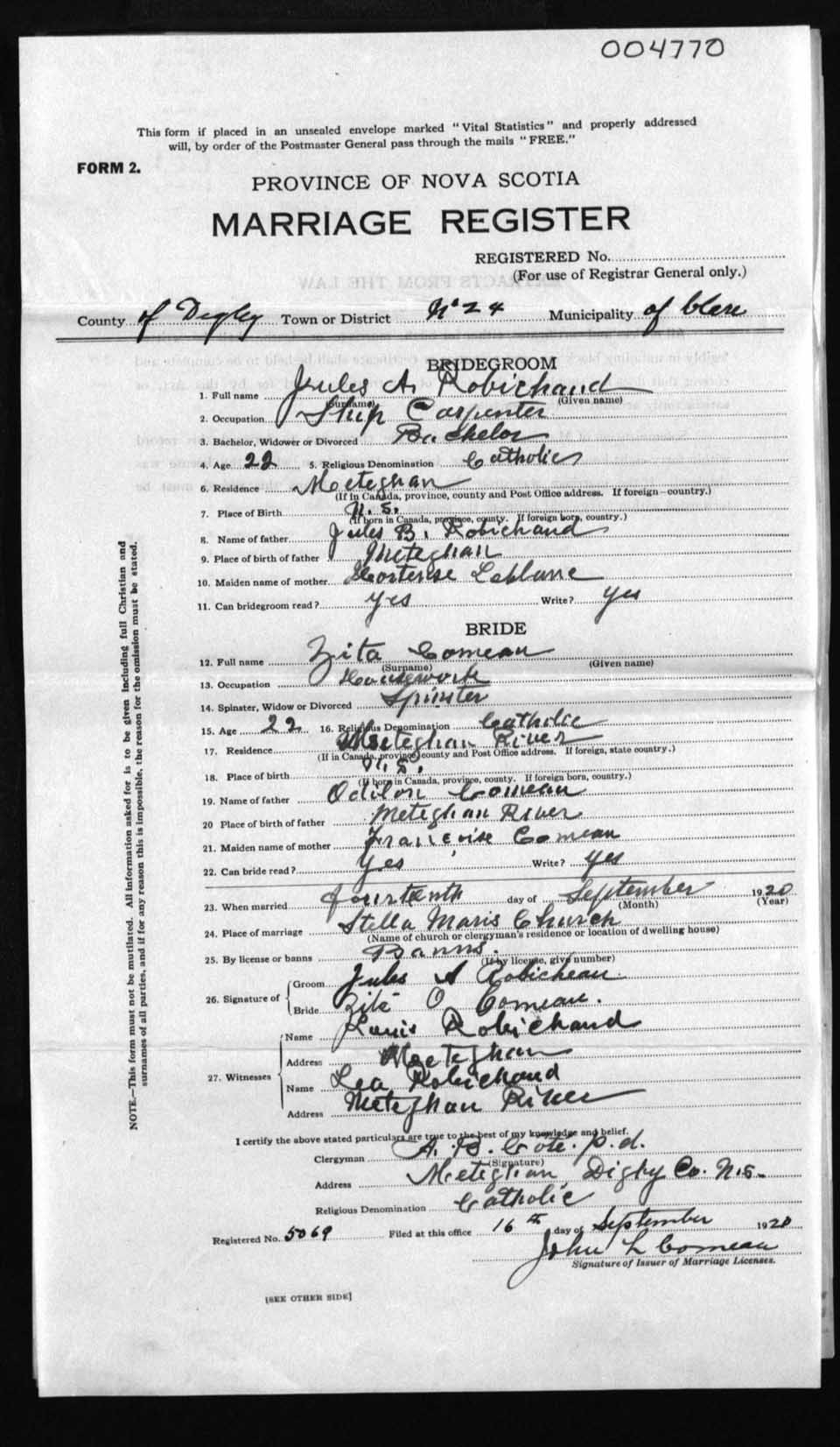 Registration: Year: 1920 number: 4770