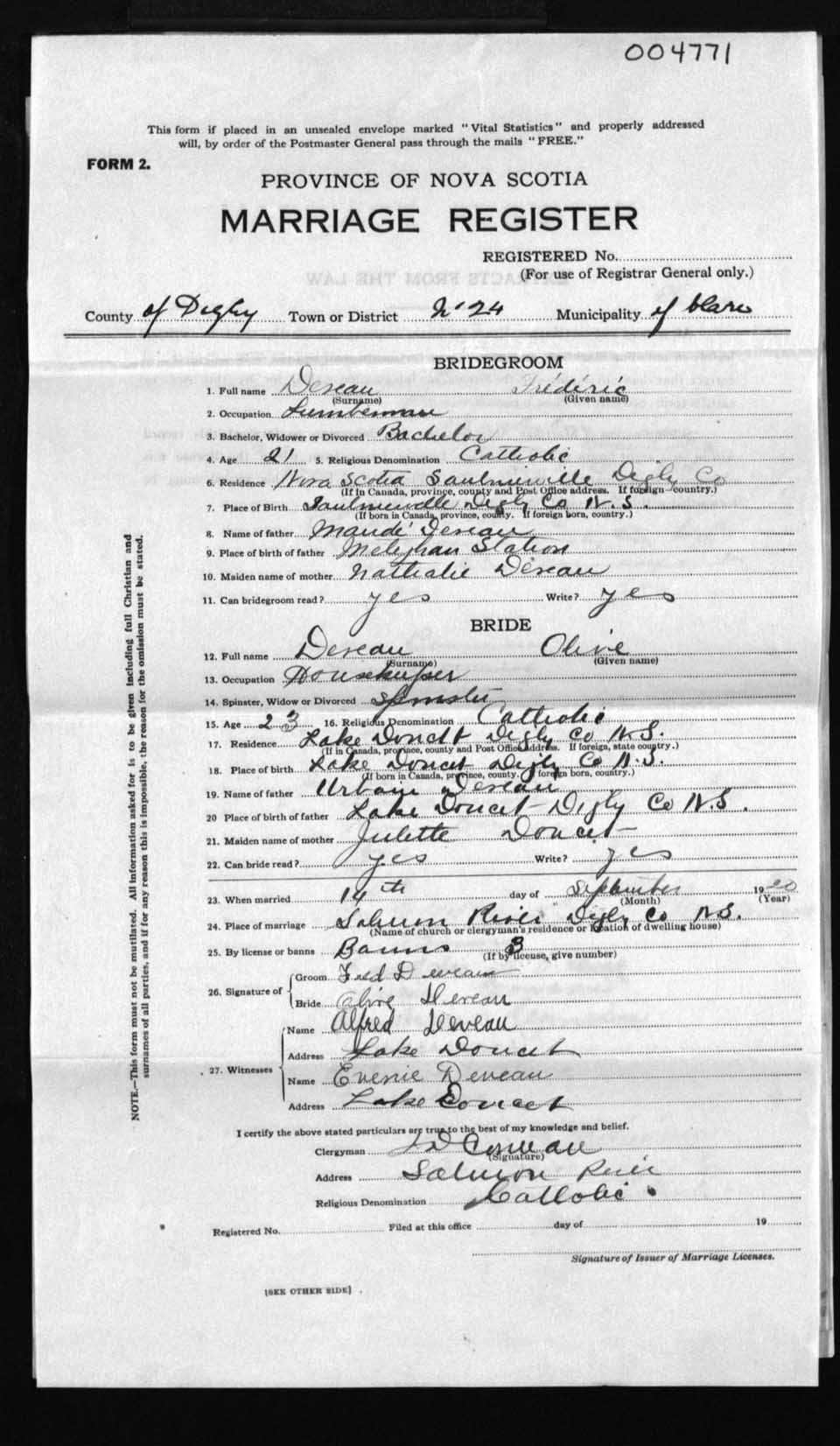 Registration: Year: 1920 number: 4771