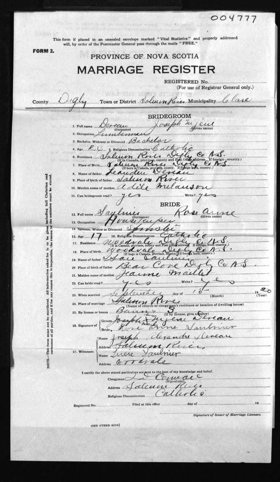Registration: Year: 1920 number: 4777