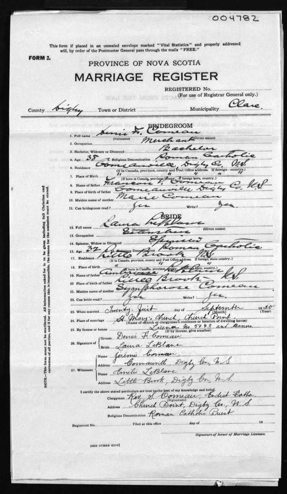 Registration: Year: 1920 number: 4782