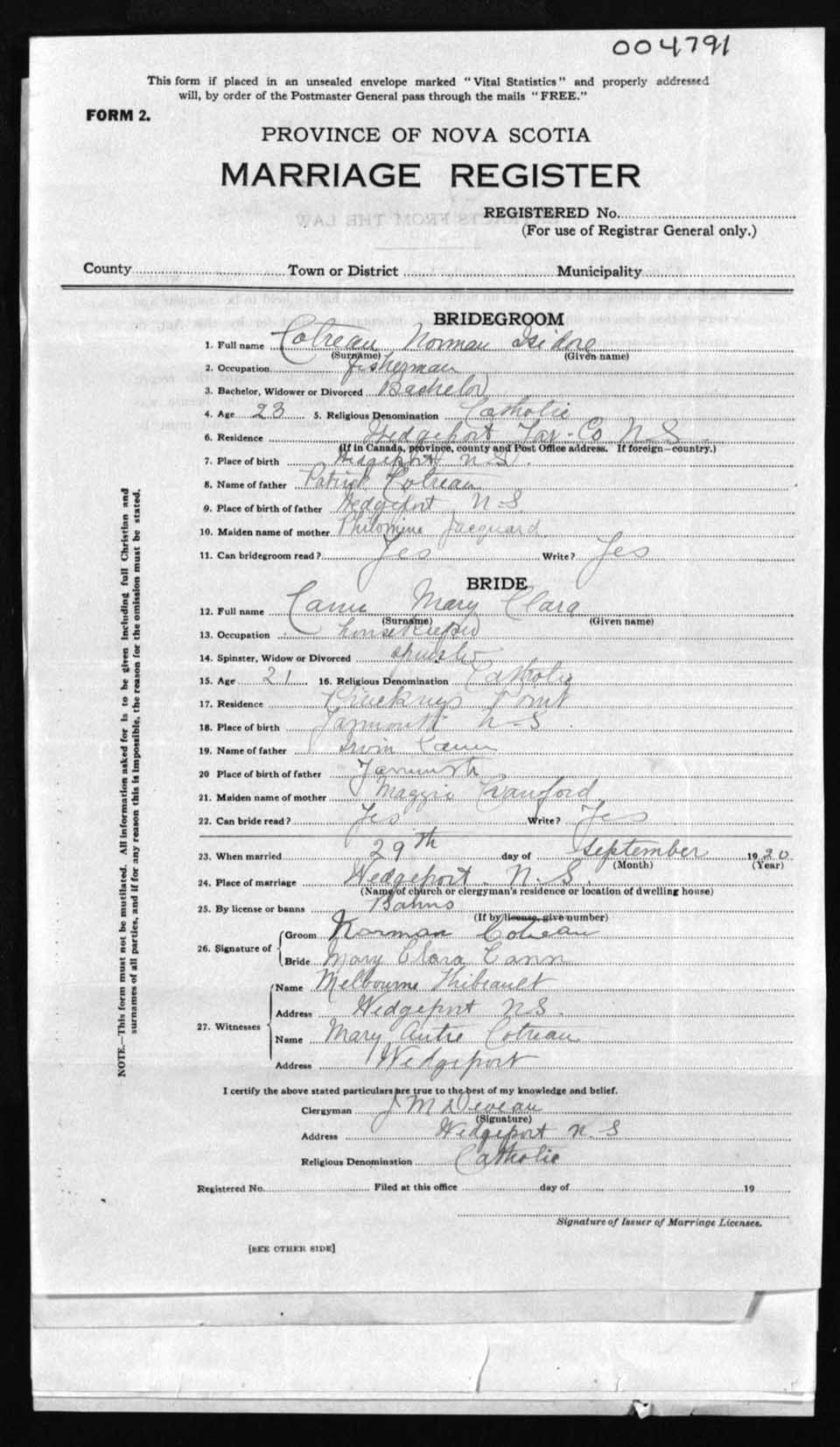 Registration: Year: 1920 number: 4791