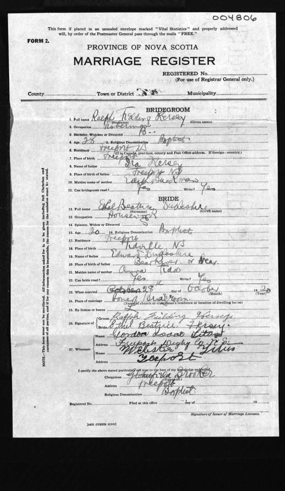 Registration: Year: 1920 number: 4806
