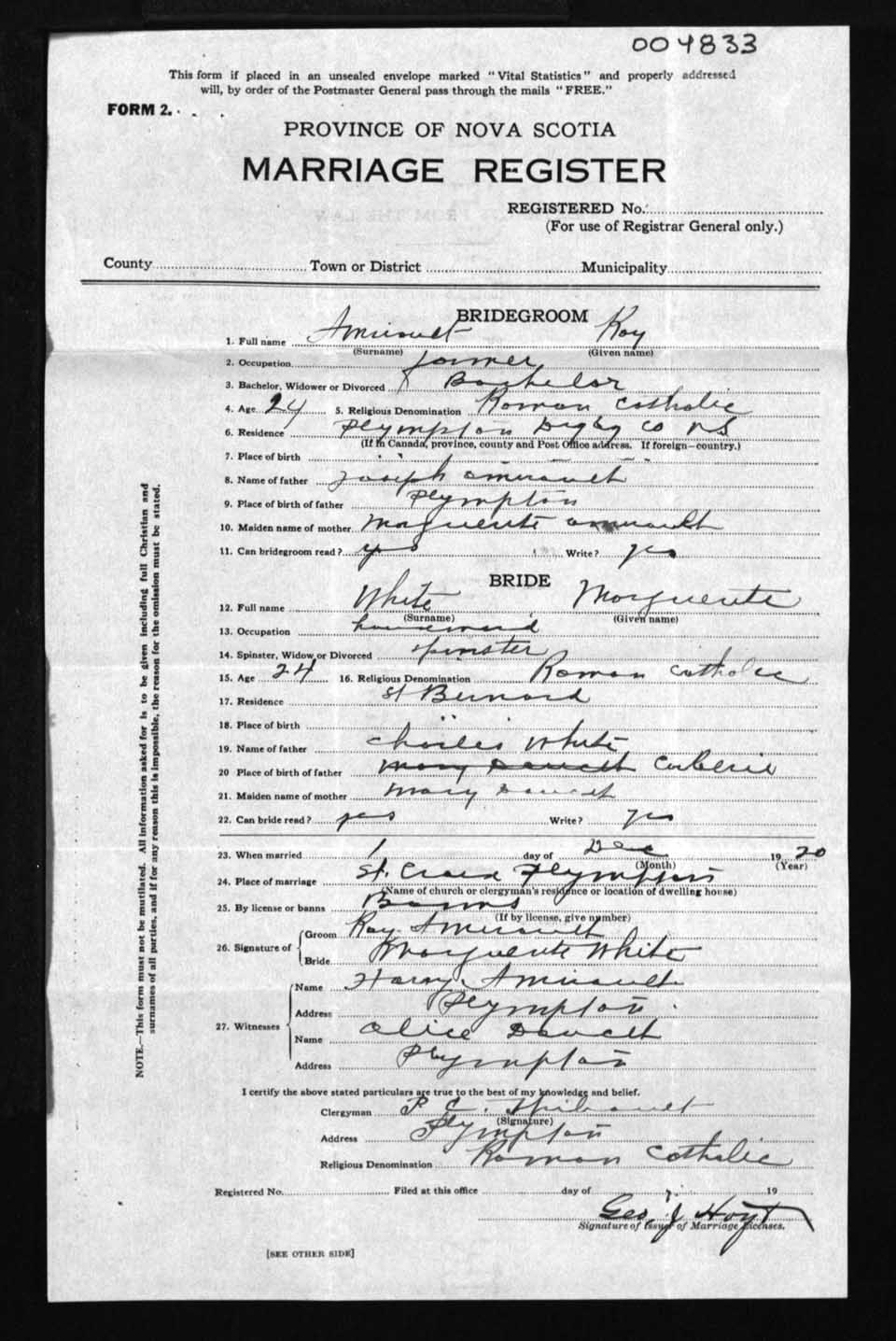 Registration: Year: 1920 number: 4833