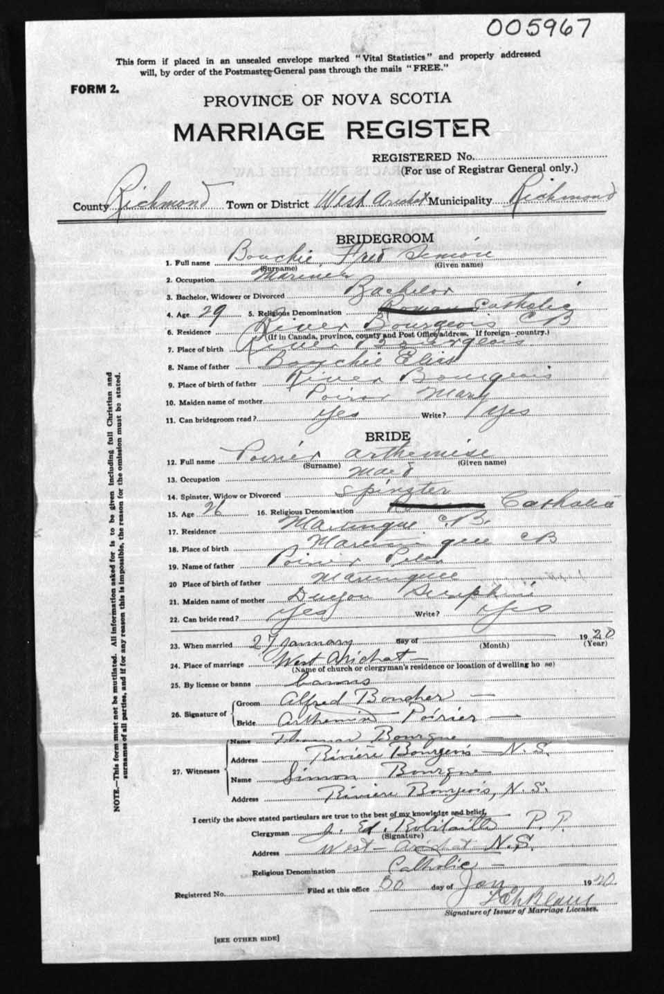 Registration: Year: 1920 number: 5967
