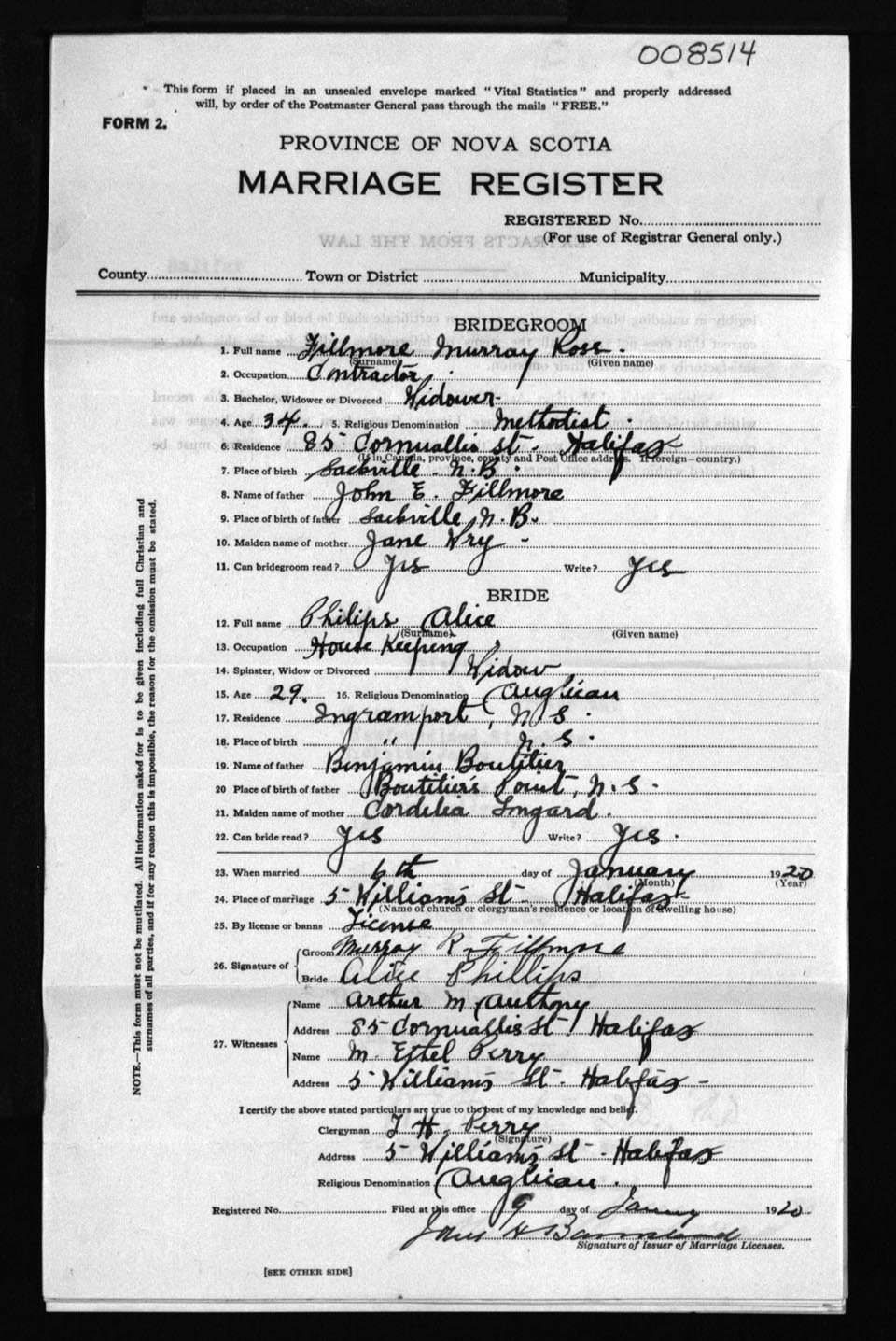 Registration: Year: 1920 number: 8514