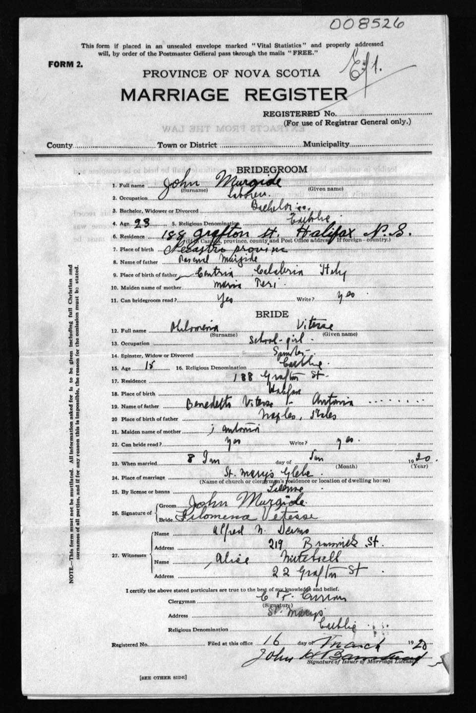 Registration: Year: 1920 number: 8526