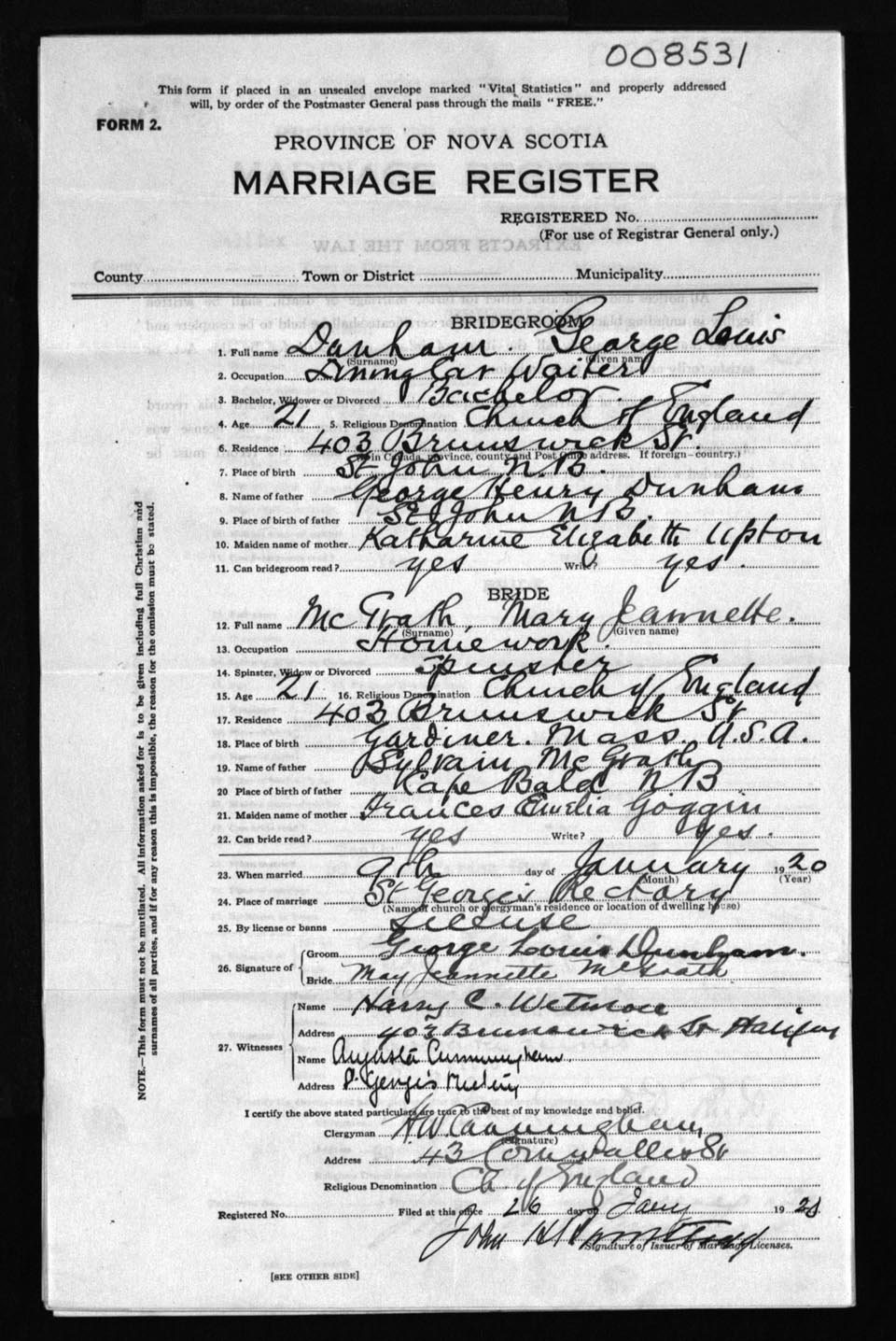 Registration: Year: 1920 number: 8531