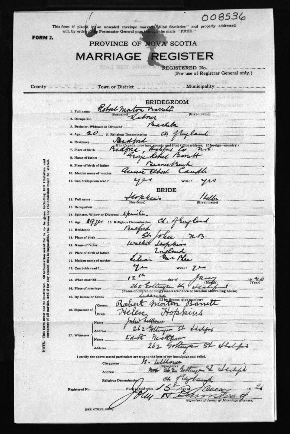 Registration: Year: 1920 number: 8536