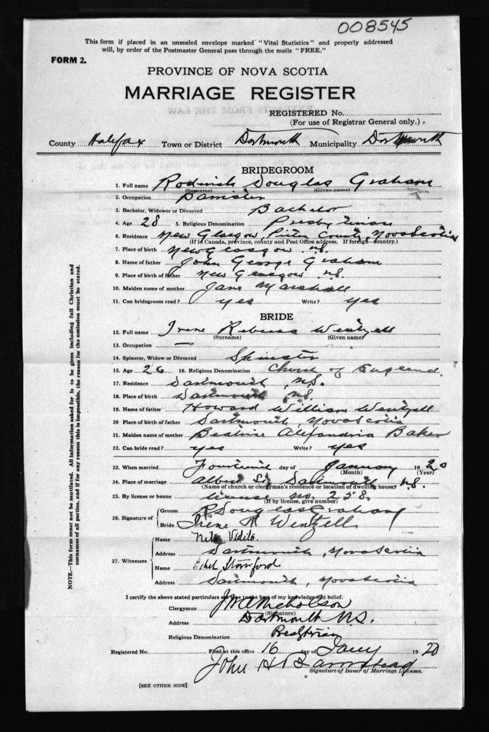 Registration: Year: 1920 number: 8545