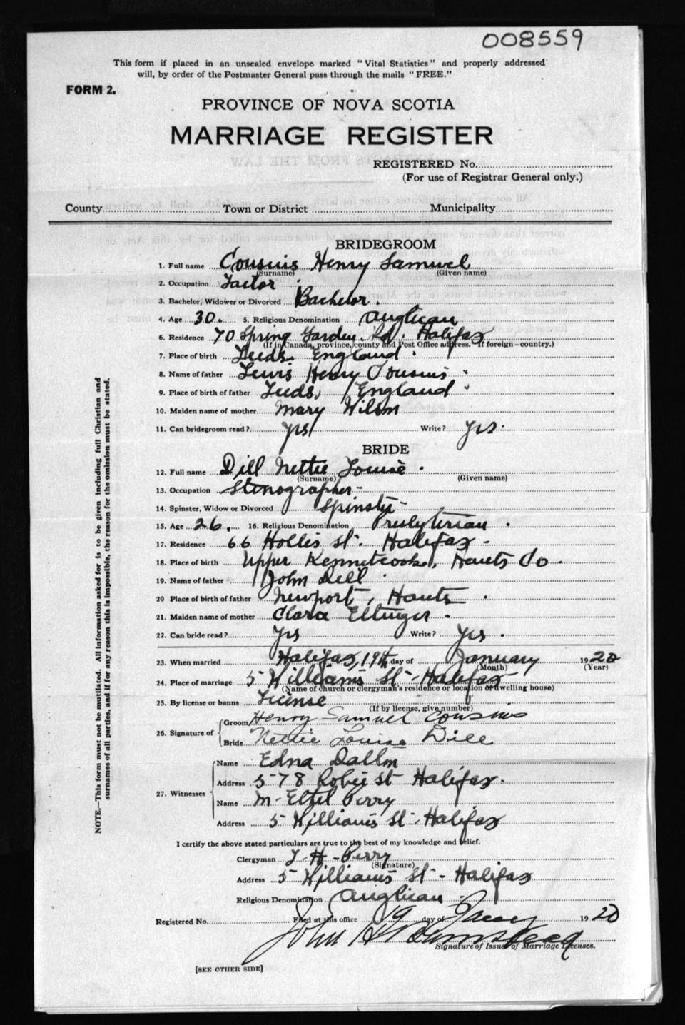 Registration: Year: 1920 number: 8559