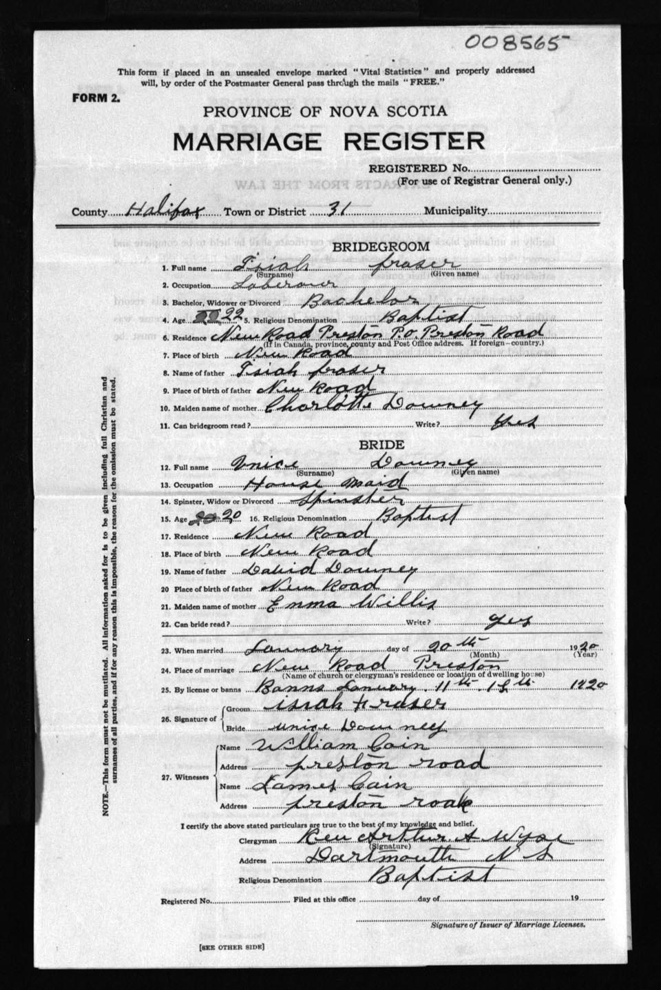 Registration: Year: 1920 number: 8565