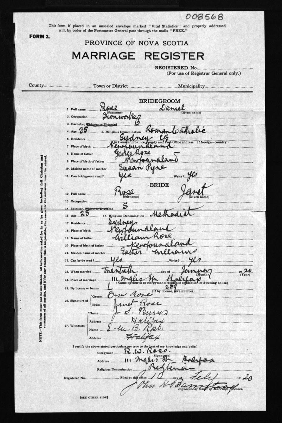 Registration: Year: 1920 number: 8568
