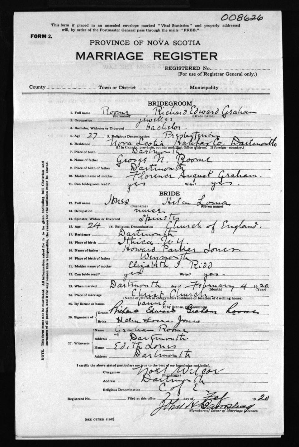 Registration: Year: 1920 number: 8626