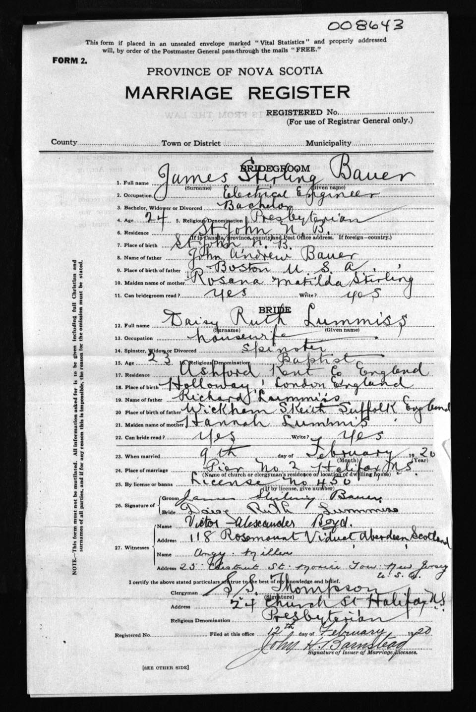 Registration: Year: 1920 number: 8643