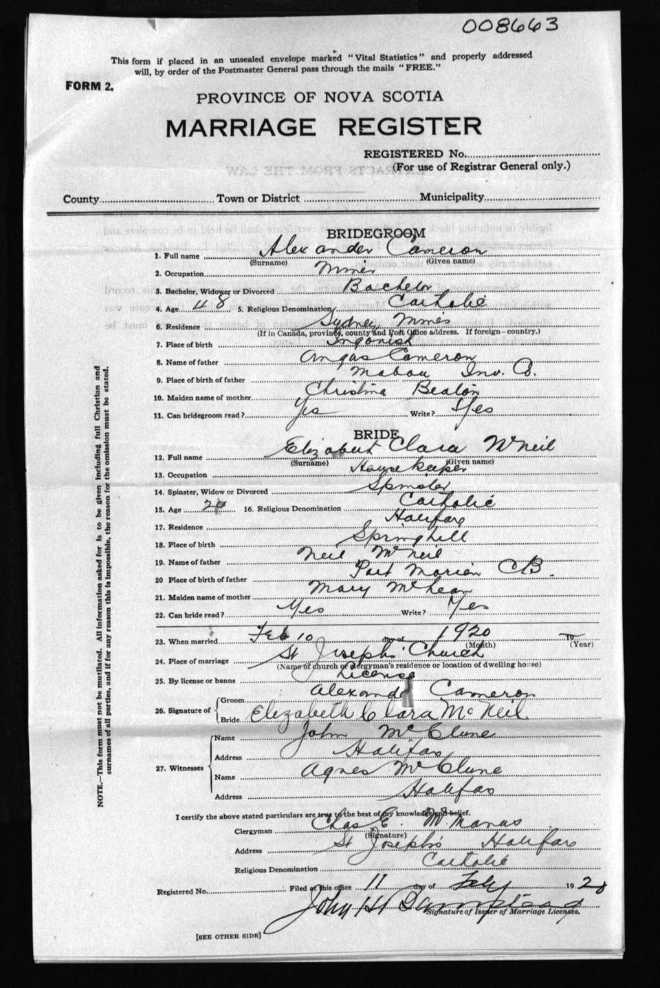 Registration: Year: 1920 number: 8663