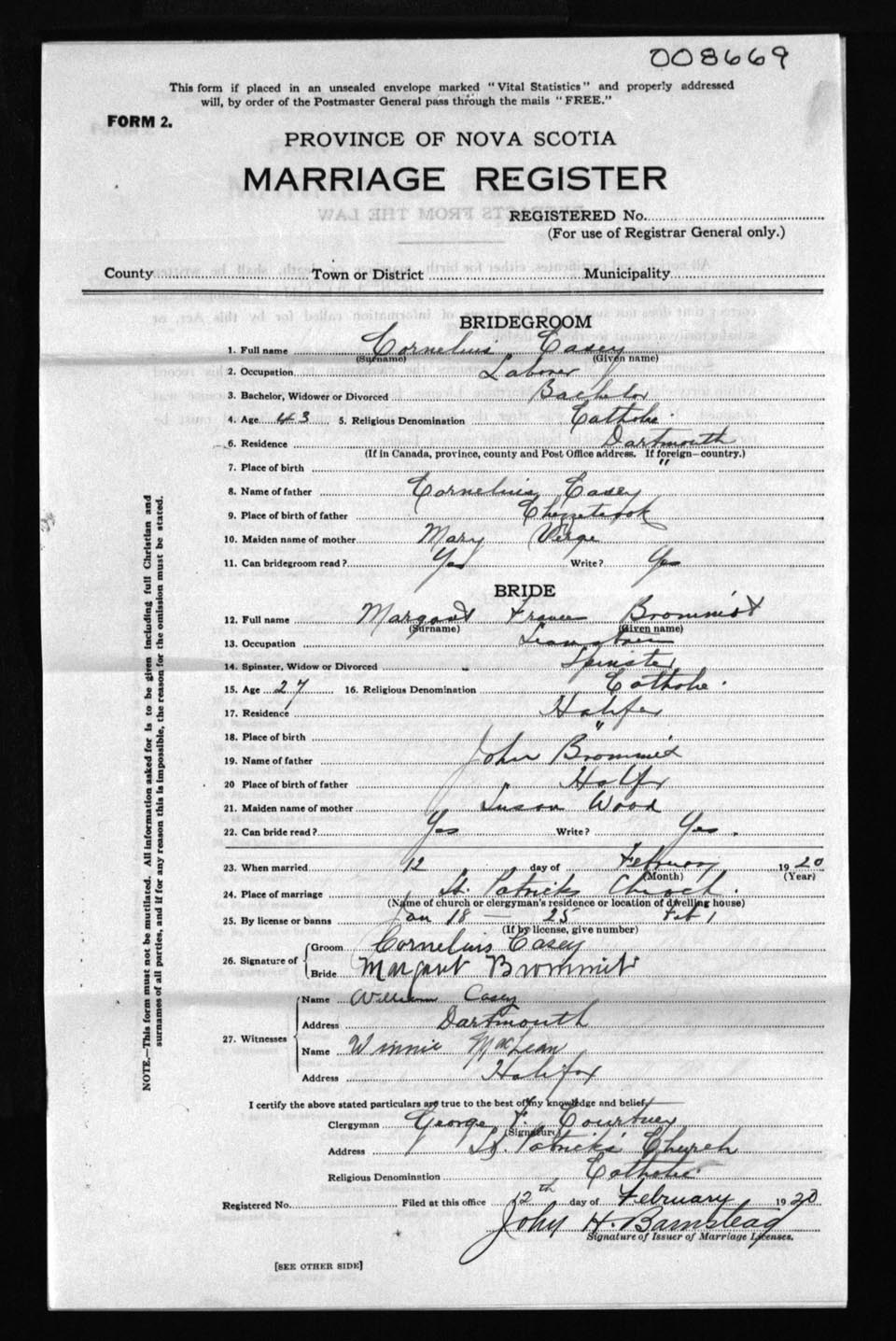 Registration: Year: 1920 number: 8669