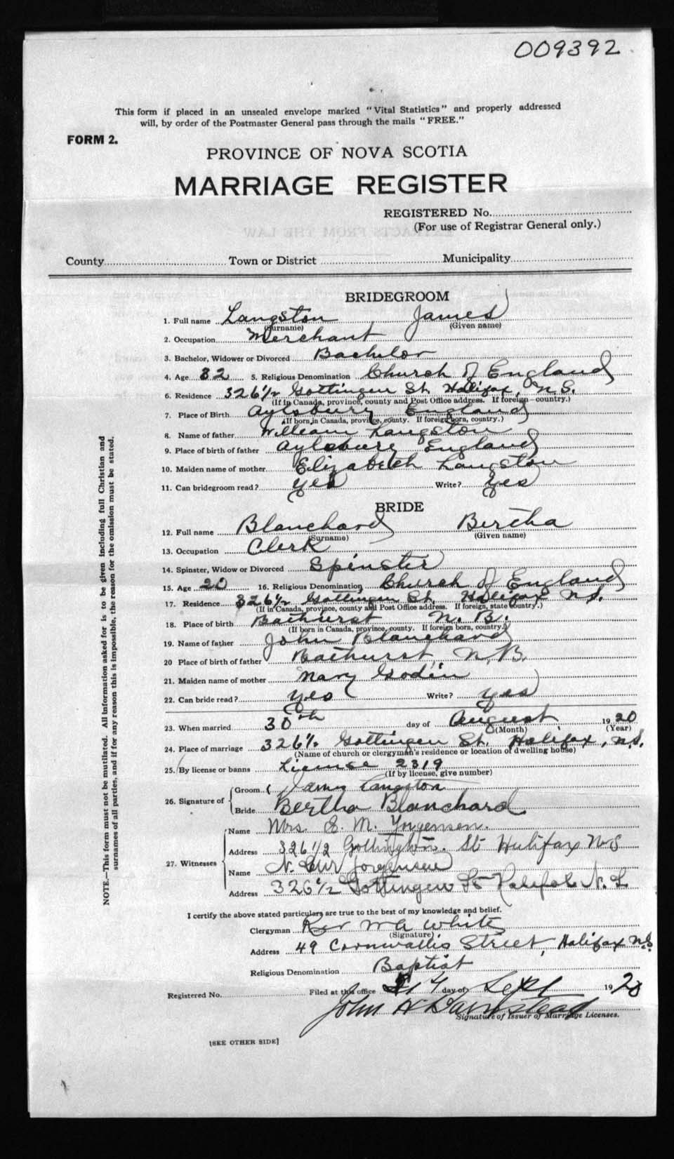 Registration: Year: 1920 number: 9392