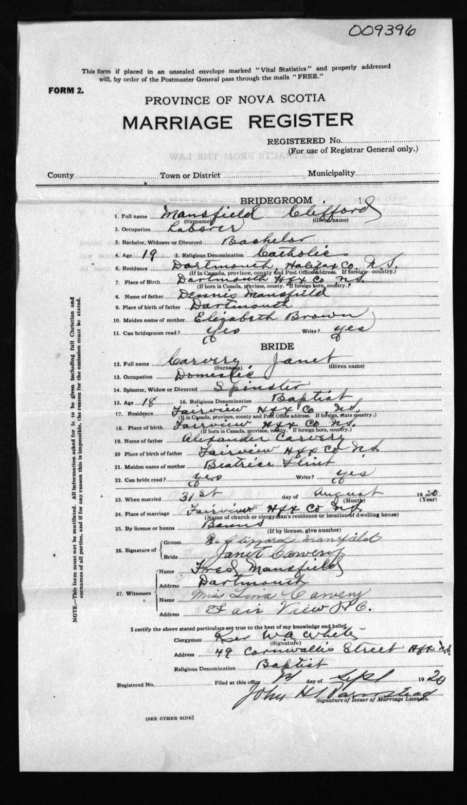 Registration: Year: 1920 number: 9396