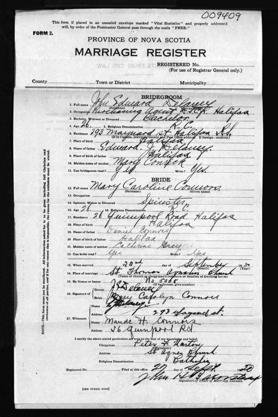 Registration: Year: 1920 number: 9409