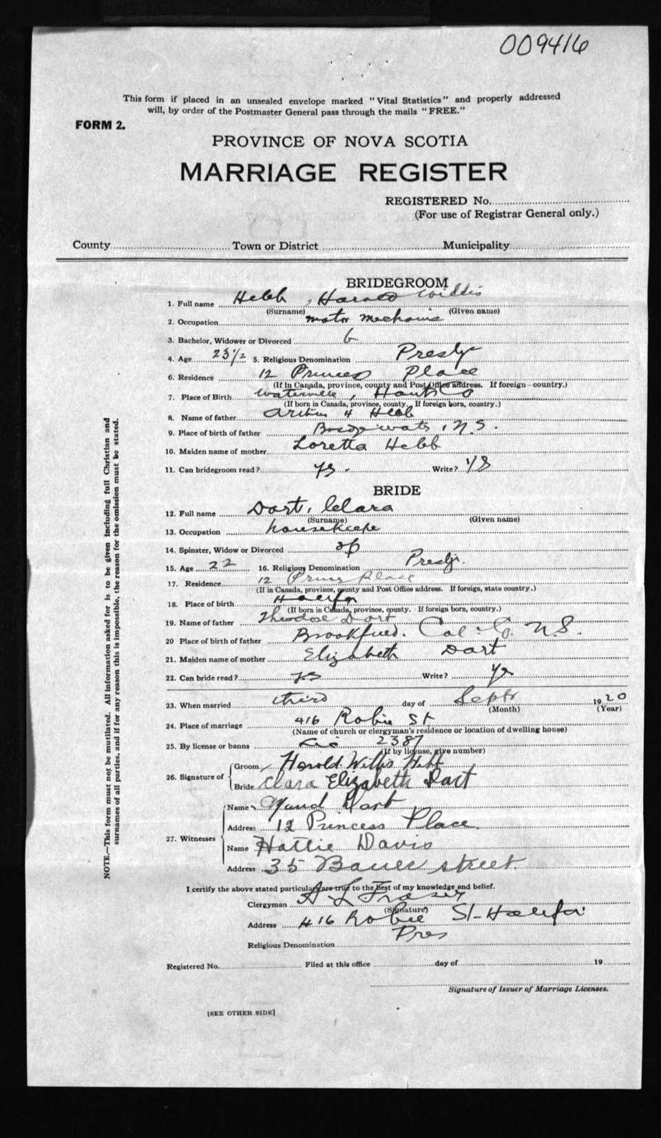Registration: Year: 1920 number: 9416