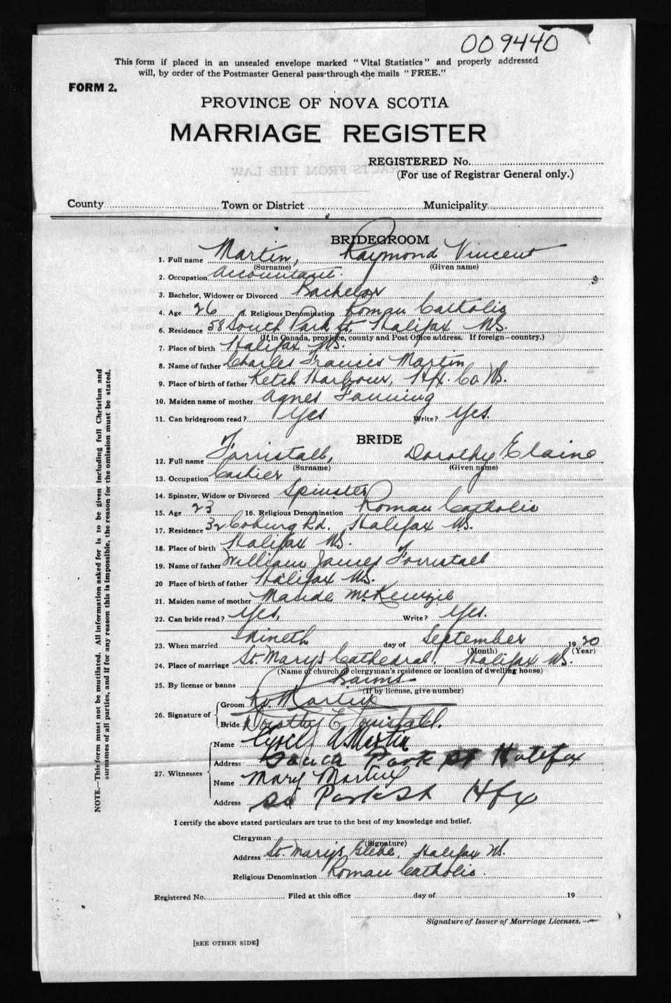 Registration: Year: 1920 number: 9440