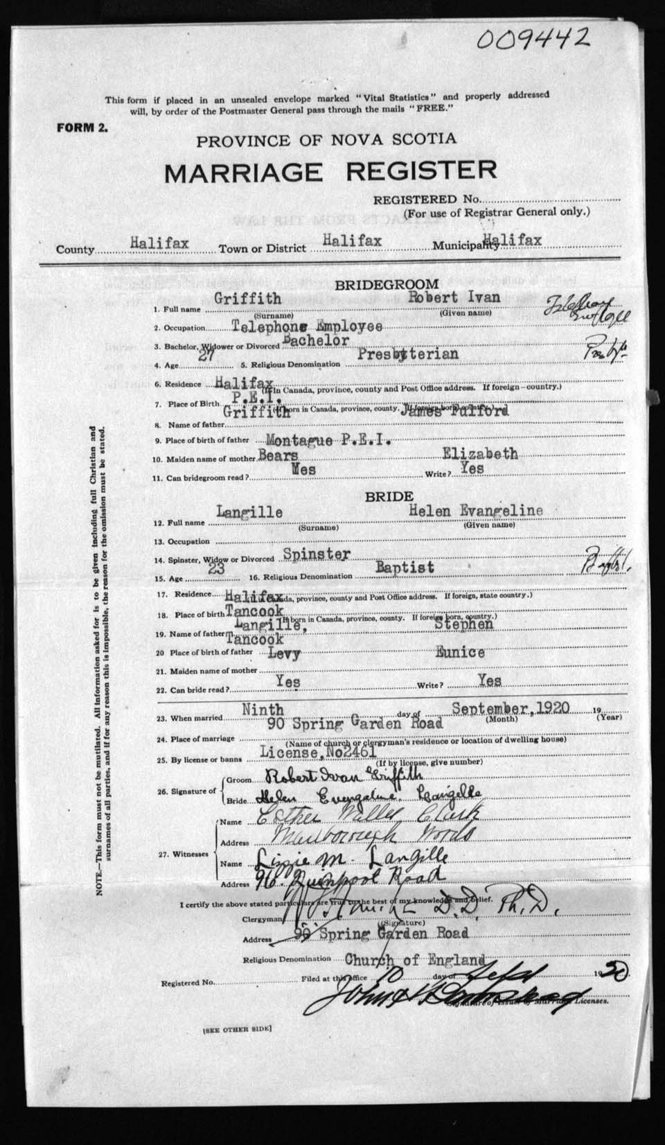 Registration: Year: 1920 number: 9442