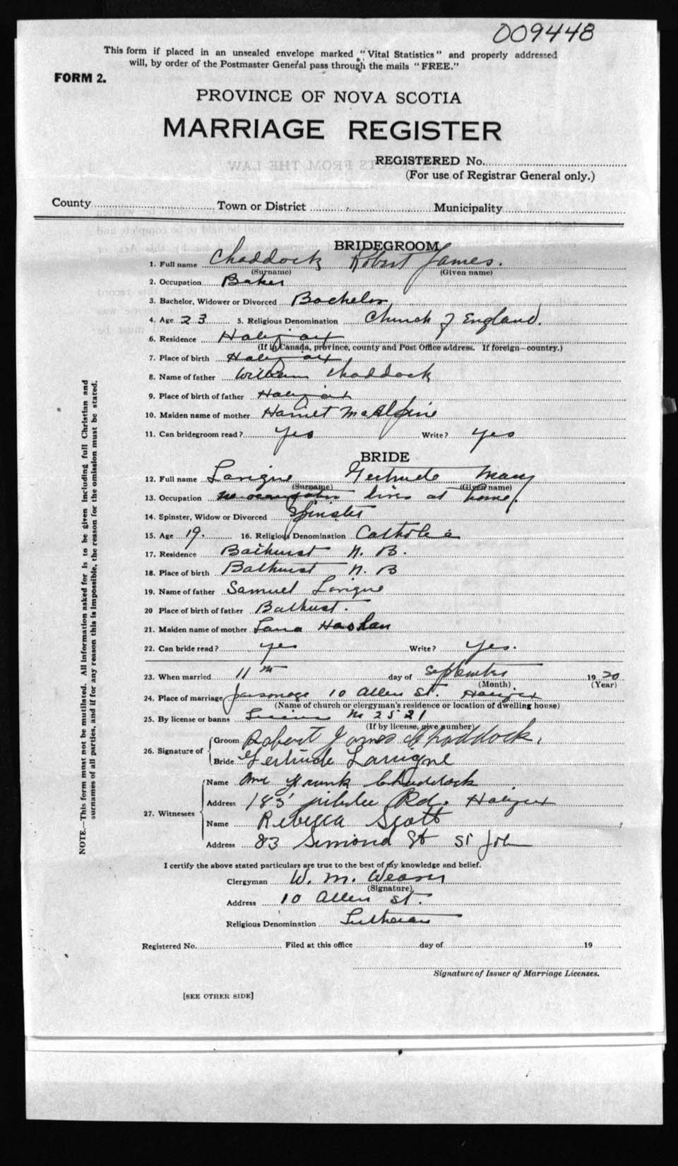 Registration: Year: 1920 number: 9448