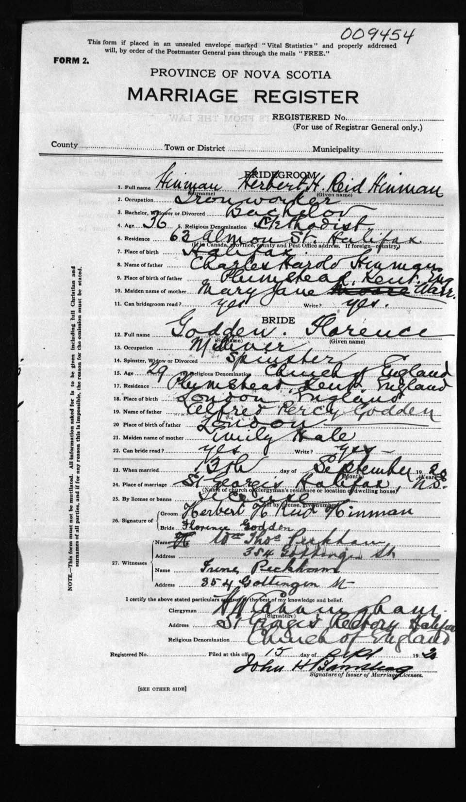 Registration: Year: 1920 number: 9454