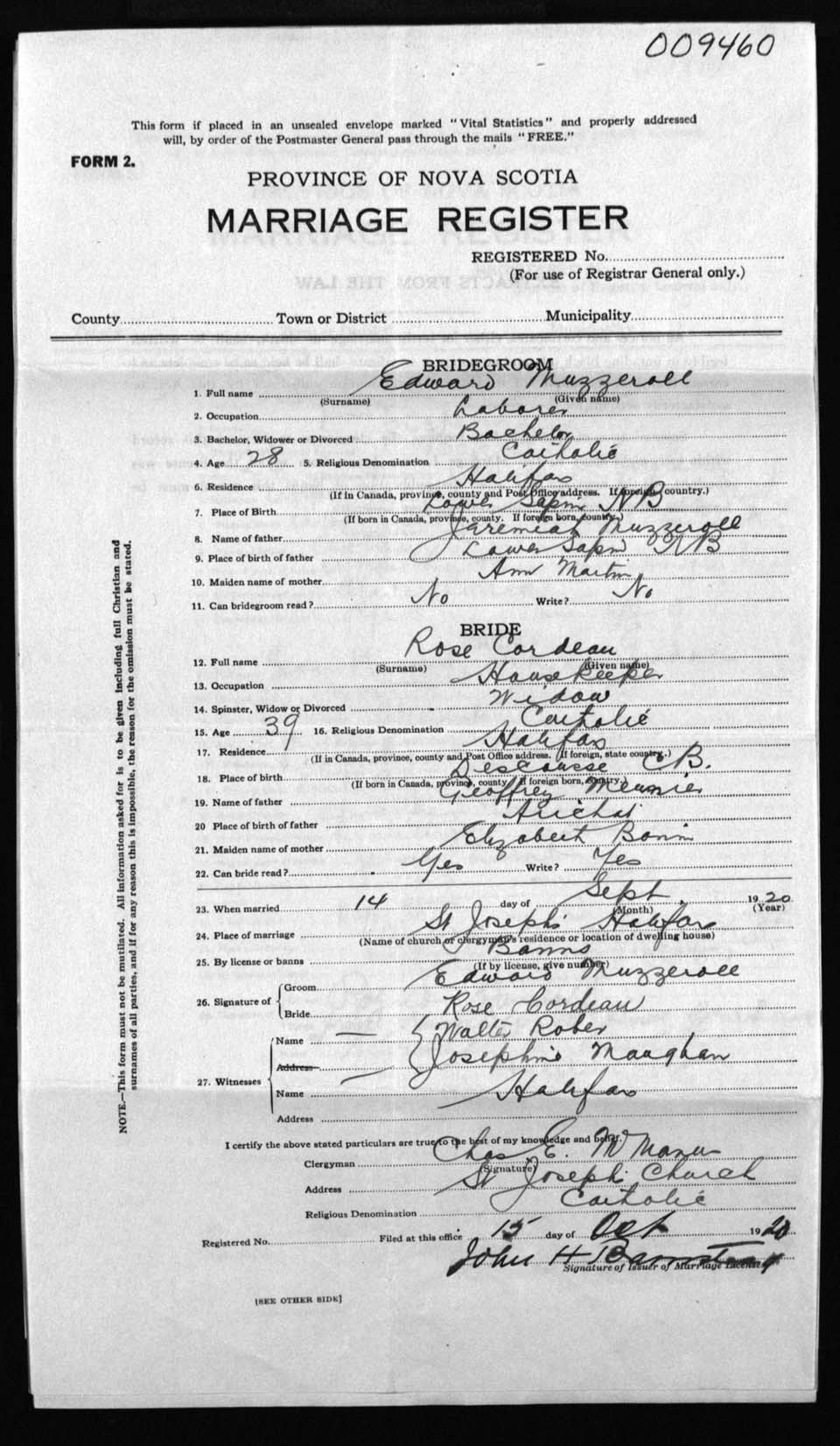 Registration: Year: 1920 number: 9460