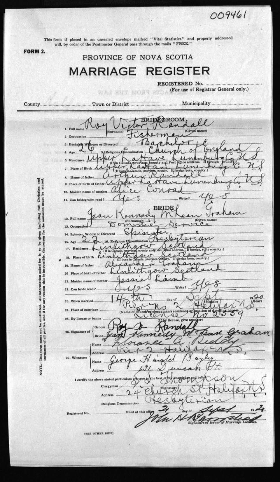 Registration: Year: 1920 number: 9461