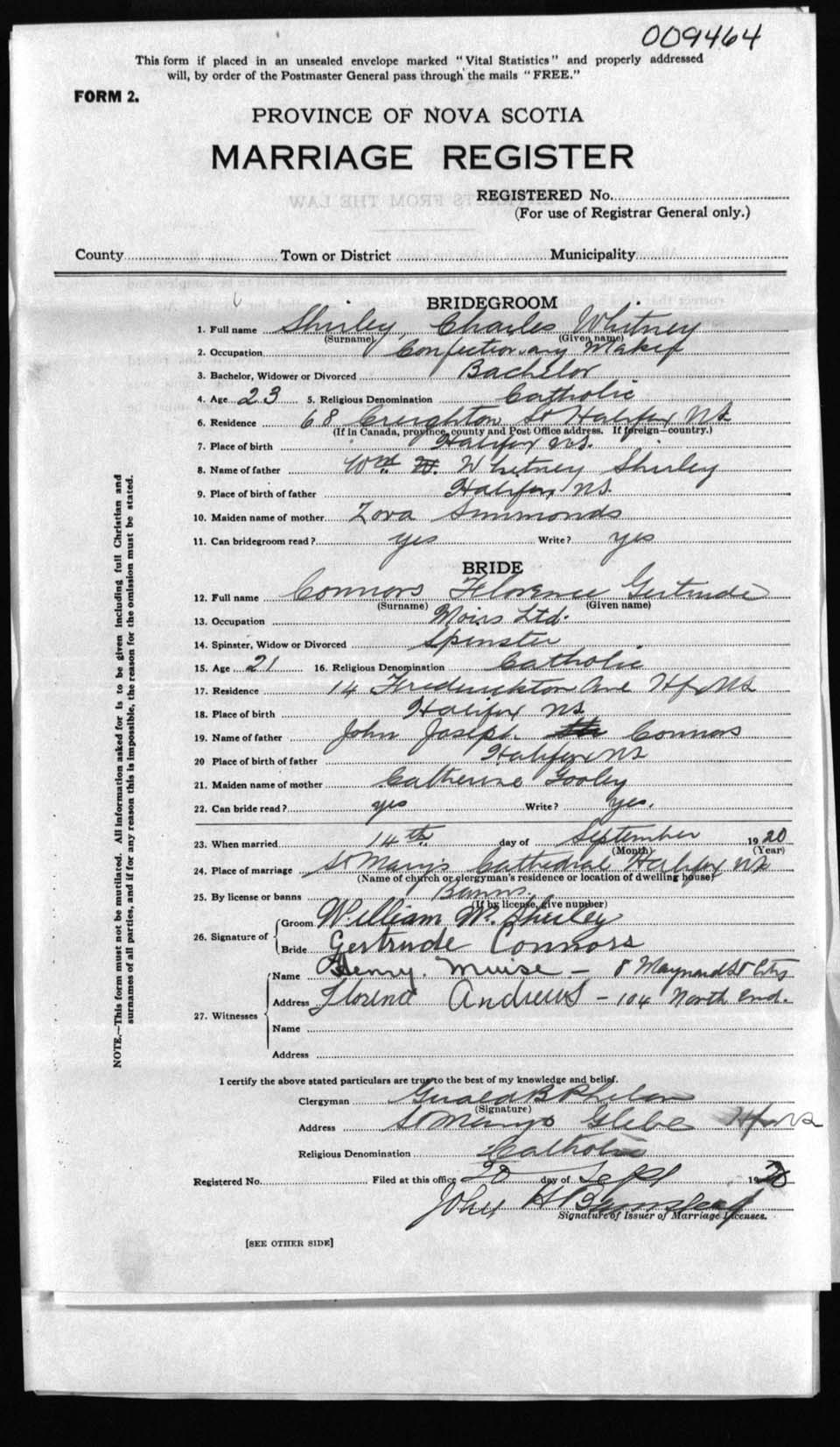 Registration: Year: 1920 number: 9464