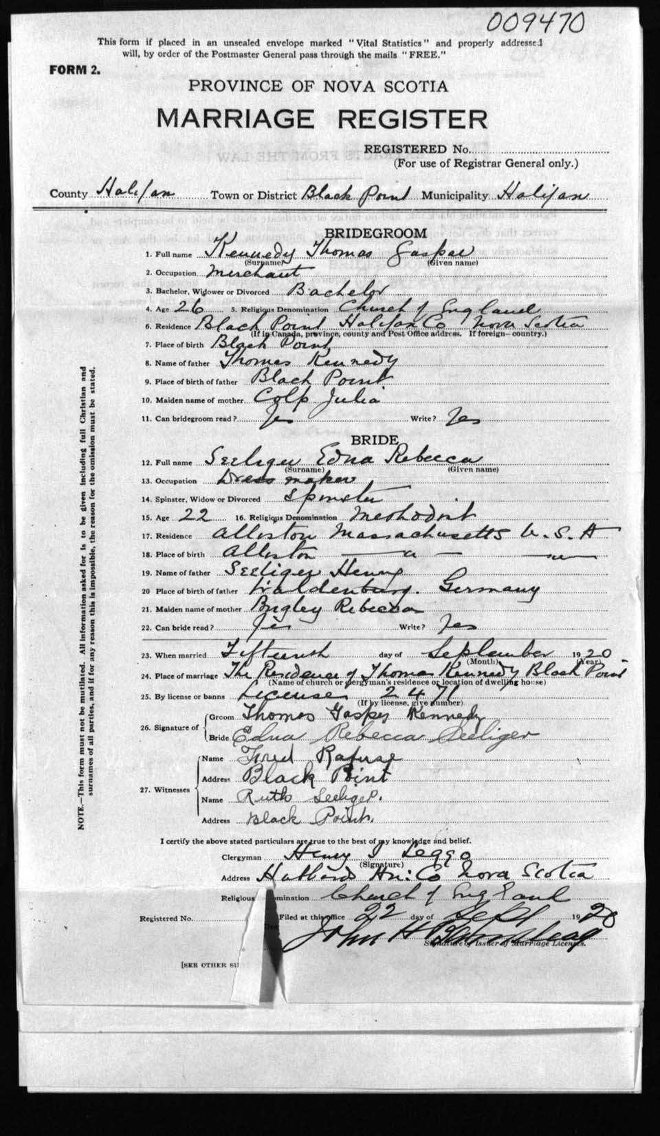Registration: Year: 1920 number: 9470
