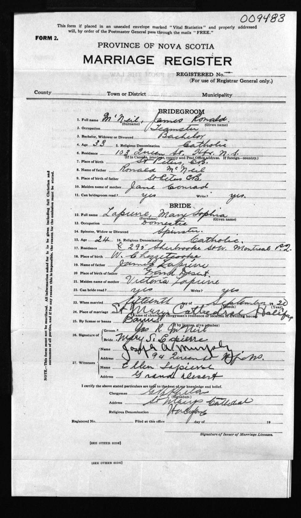 Registration: Year: 1920 number: 9483