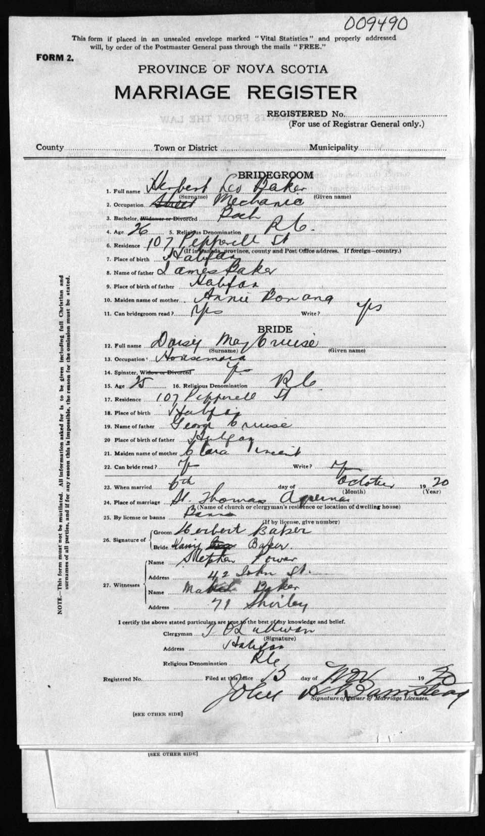 Registration: Year: 1920 number: 9490