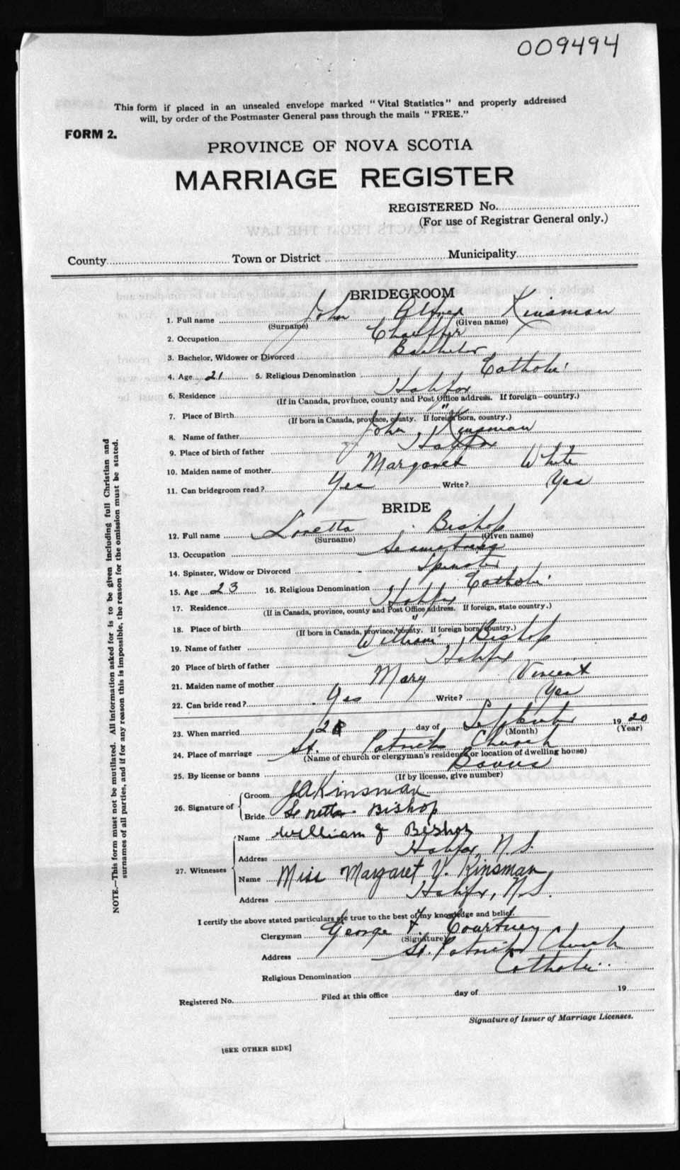 Registration: Year: 1920 number: 9494