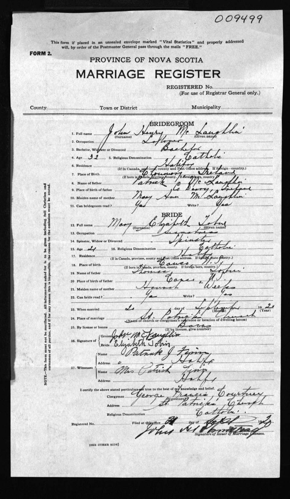 Registration: Year: 1920 number: 9499