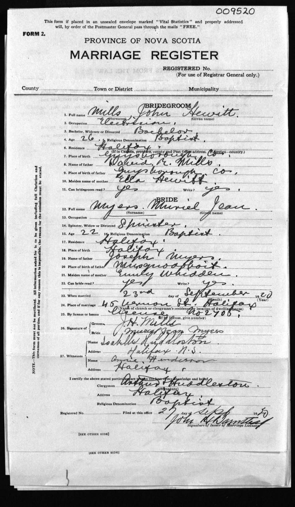 Registration: Year: 1920 number: 9520