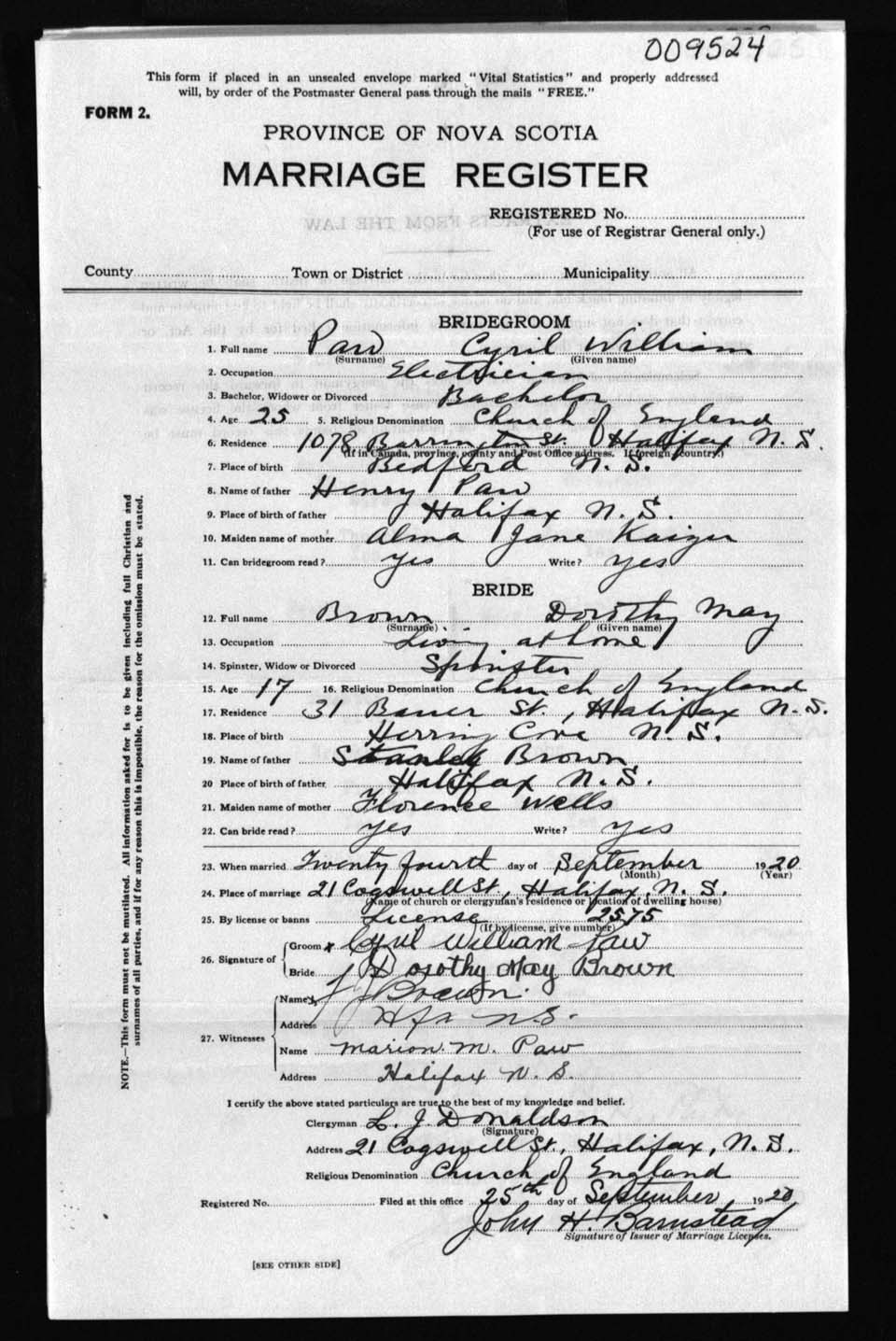 Registration: Year: 1920 number: 9524