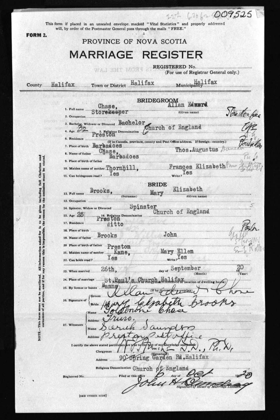 Registration: Year: 1920 number: 9525