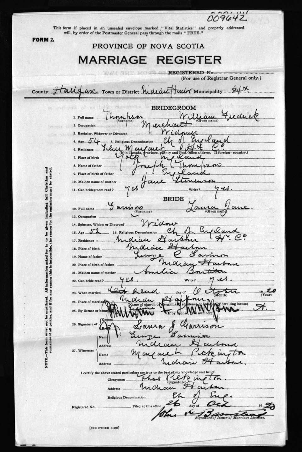 Registration: Year: 1920 number: 9642