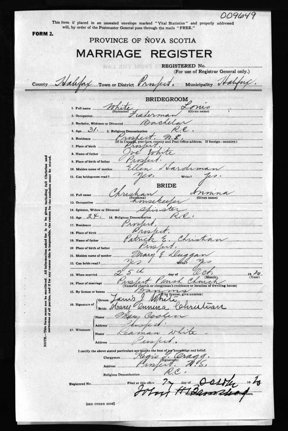 Registration: Year: 1920 number: 9649