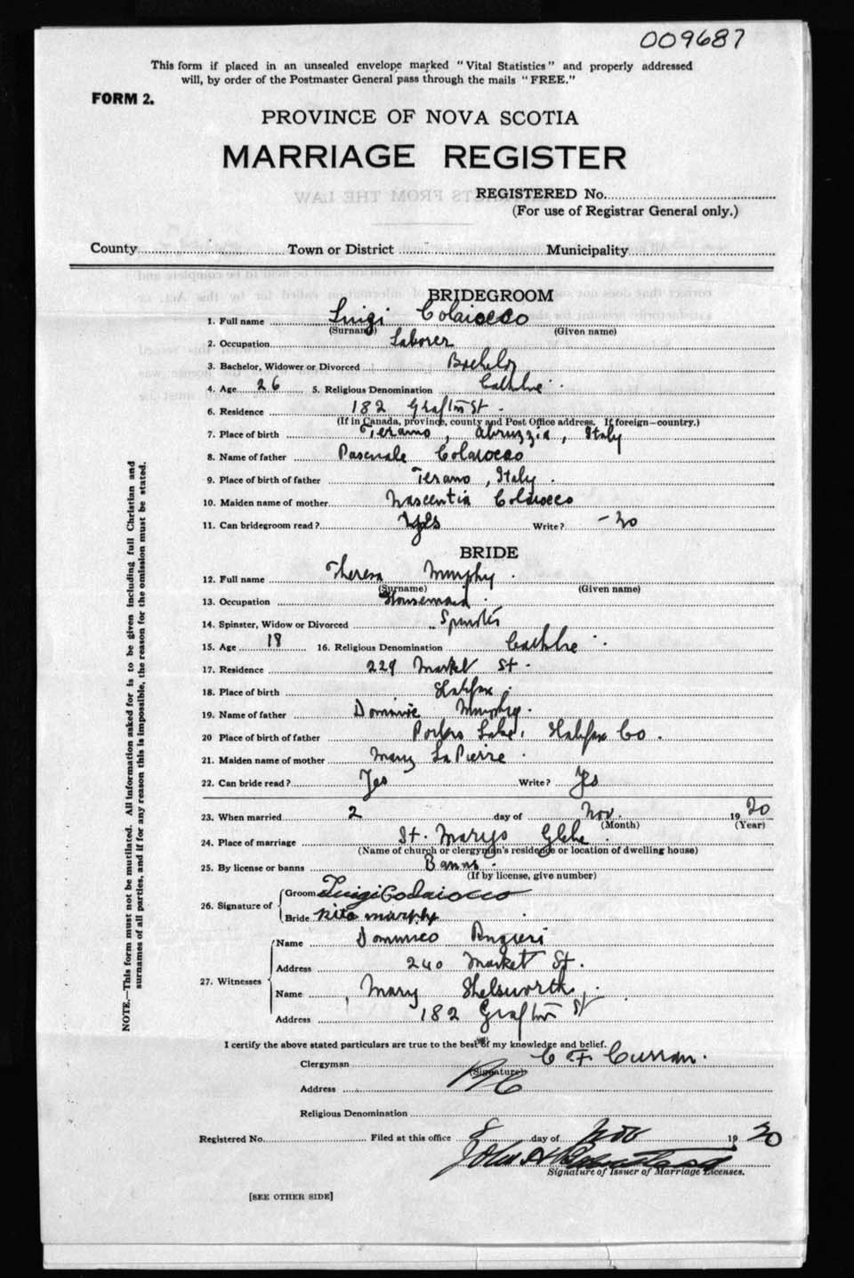 Registration: Year: 1920 number: 9687