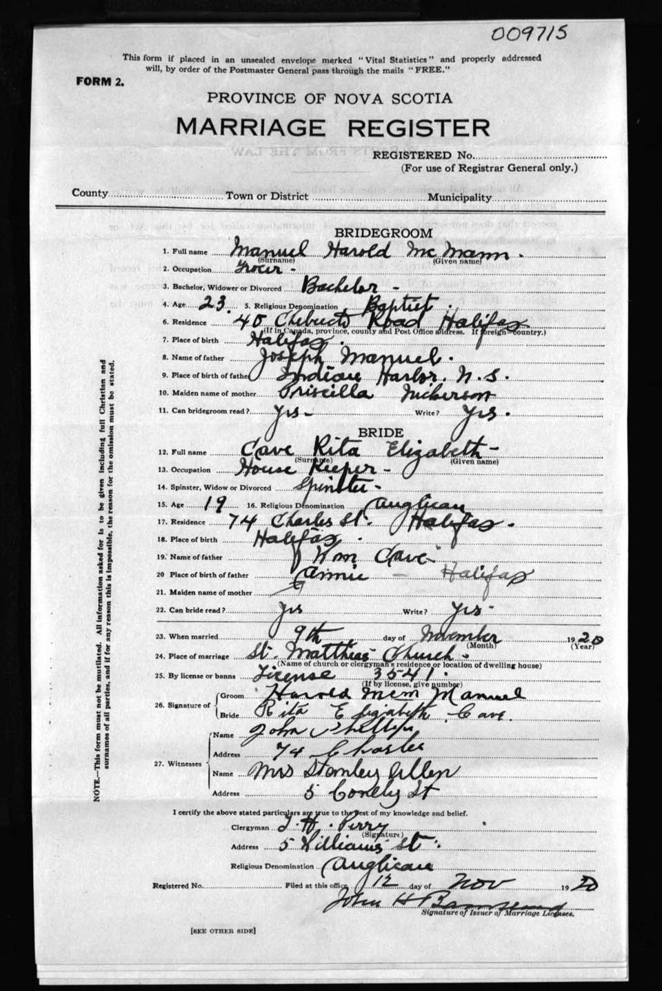 Registration: Year: 1920 number: 9715