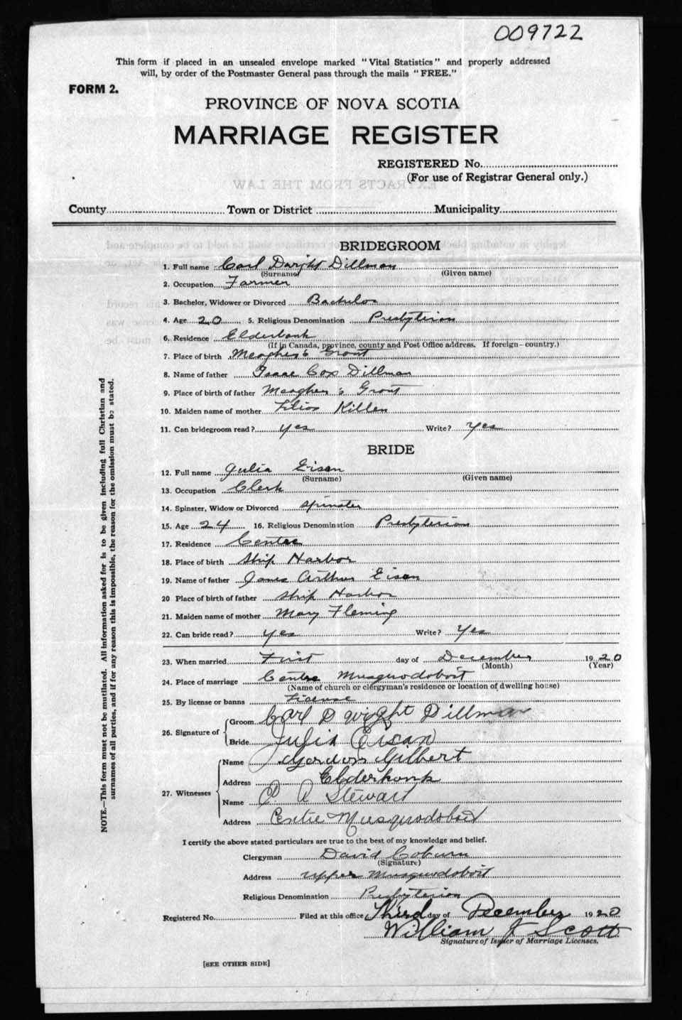 Registration: Year: 1920 number: 9722