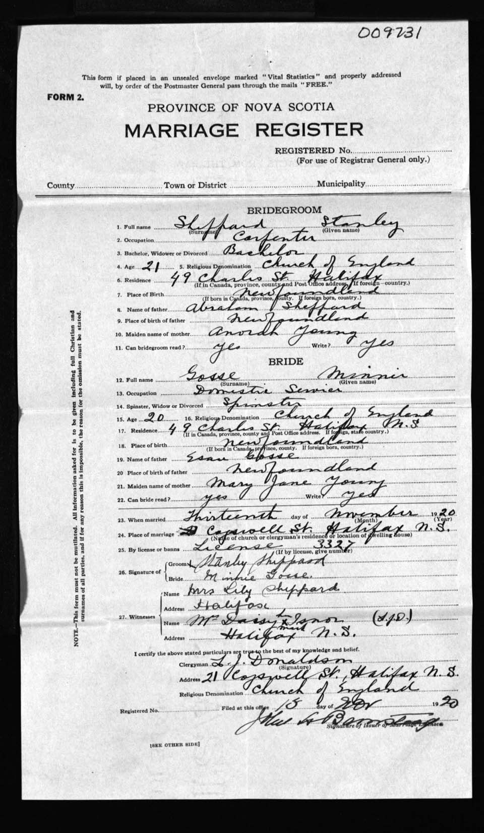 Registration: Year: 1920 number: 9731