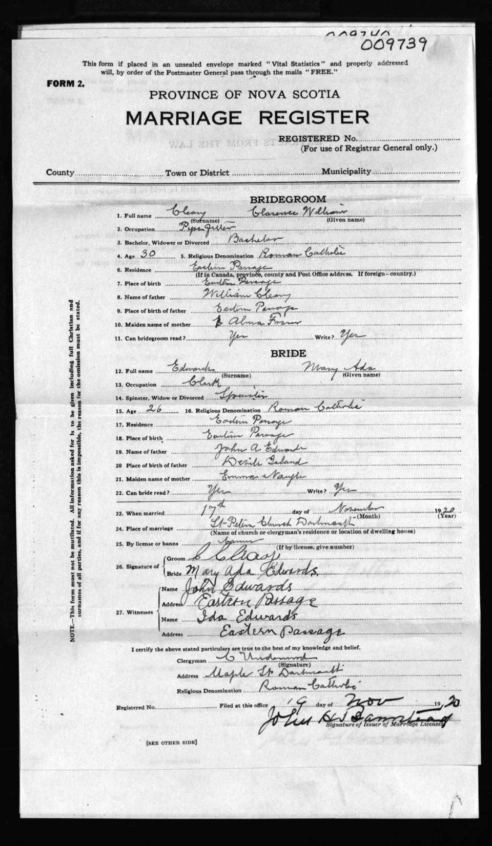 Registration: Year: 1920 number: 9739