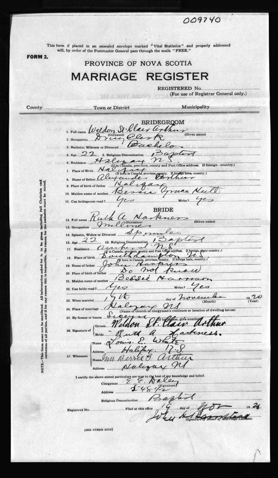 Registration: Year: 1920 number: 9740